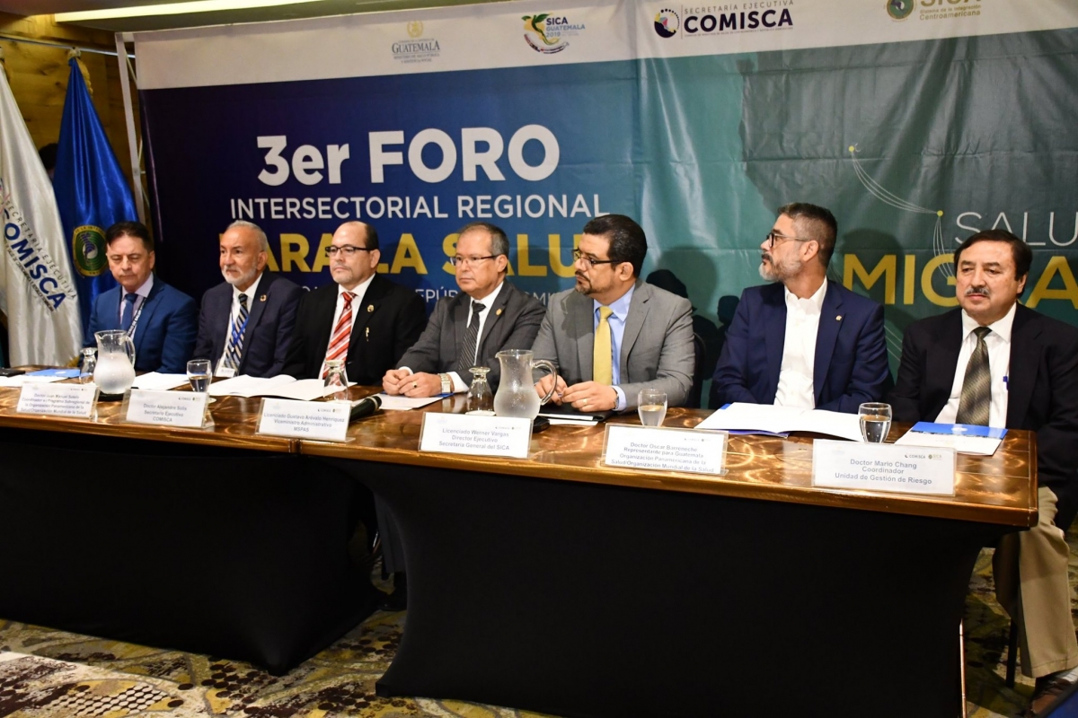 Inauguró este importante encuentro el Dr. Gustavo Arévalo; Viceministro Administrativo del Ministerio de Salud de Guatemala junto al Lic. Werner Vargas, Director Ejecutivo de la Secretaría General del SICA; Dr. Alejandro Solís Martínez, Secretario Ejecutivo de COMISCA; Dr. Juan Manuel Sotelo del Programa Subregional para Centroamérica de la OPS/OMS y el Dr. Oscar Barreneche, Representante para Guatemala de la OPS/OMS.