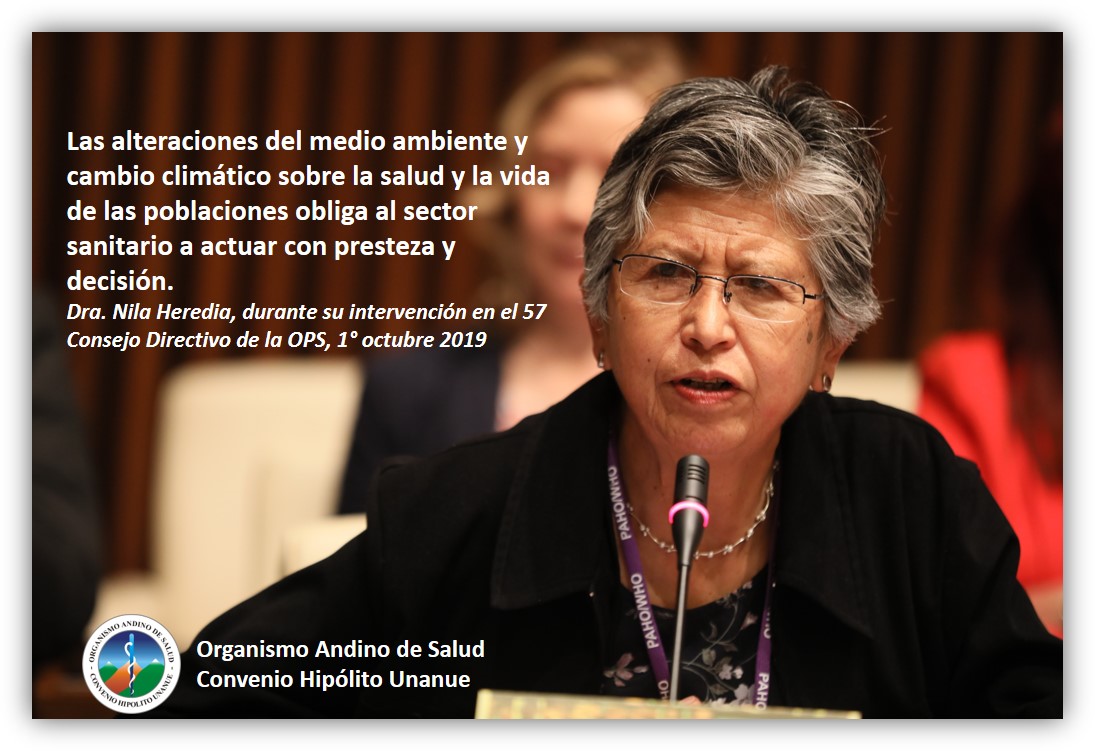 Los ministerios de salud de Bolivia, Chile, Colombia, Ecuador, Perú y Venezuela, miembros del Organismo Andino de Salud – Convenio Hipólito Unanue (ORAS-CONHU) reconocen al cambio climático como el mayor desafío del siglo XXI, porque amenaza al bienestar y la vida de todos los seres vivos, constituyéndose en una determinante poderosa para la salud; por ello los ministros de salud andinos han resuelto elaborar el Plan Andino de Salud y Cambio Climático, que permita a la región, no solo disminuir el impacto negativo sobre la salud de la población, sino establecer acciones que contribuyan a mitigarlo.