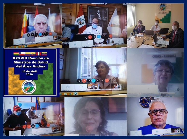 Atendiendo la convocatoria del Organismo Andino de Salud – Convenio Hipólito Unanue para la realización de la XXXVIII Reunión de Ministros de Salud del Área Andina, autoridades de los seis países andinos se reunieron de forma virtual el día jueves 16 de abril, para continuar el trabajo conjunto, dando respuesta a los problemas comunes que enfrenta la subregión, agudizada en los últimos meses por la pandemia del Coronavirus 2019.