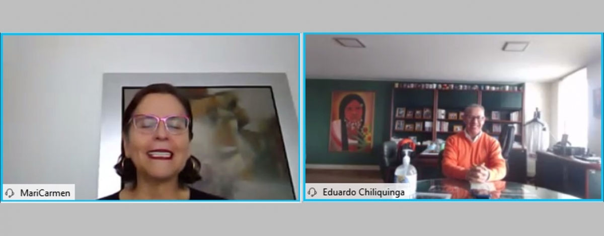 La Dra. María del Carmen Calle Dávila, Secretaria Ejecutiva del ORAS – CONHU se reunió el día de ayer, con el Secretario General del Parlamento Andino, doctor Eduardo Chiliquinga Mazón, con quién desarrolló una agenda de trabajo con acciones concretas de cara al COVID-19 en la región andina.