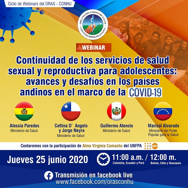 El día jueves 25 de junio realizaremos nuestro octavo seminario virtual "Continuidad de los servicios de salud sexual y reproductiva para adolescentes: avances y desafíos en los países andinos en el marco del COVID-19".