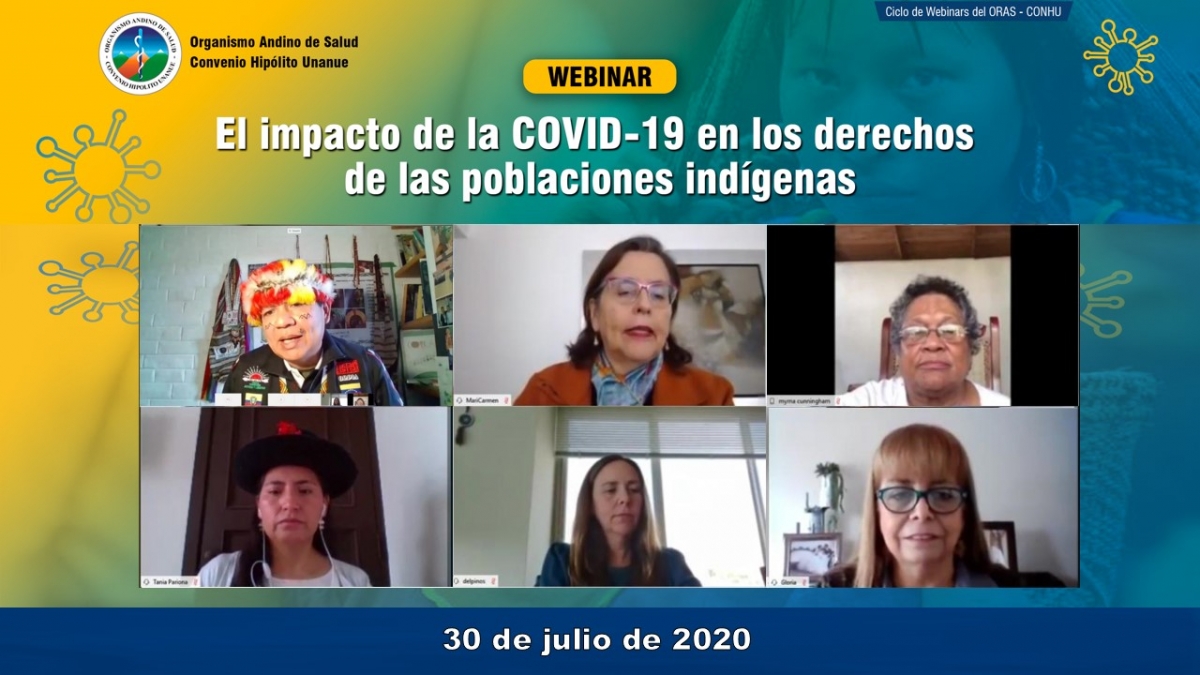 El 30 de julio se realizó este webinar para analizar la situación de los pueblos indígenas frente a la pandemia generada por el COVID–19, con representantes de las Organizaciones Indígenas de la Cuenca Amazónica (COICA), del Fondo para el Desarrollo de los Pueblos Indígenas de América latina y el Caribe (FILAC), del Programa Mujer Indígena de Chirapaq, y de una experta de la OPS.