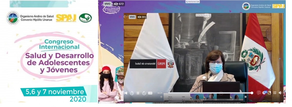 El día de hoy, 5 de noviembre, la Ministra de Salud del Perú, Dra. Pilar Mazzetti inauguró el Congreso Internacional Salud y Desarrollo de Adolescentes y Jóvenes, organizado por el Organismo Andino de Salud – Convenio Hipólito Unanue, ORAS – CONHU, en coordinación con la Sociedad Peruana de Adolescencia y Juventud, SPAJ y el auspicio de la Confederación de Adolescencia y Juventud de Iberoamérica, Italia y el Caribe, CODAJIC y que contó con más de 1300 participantes de los países de las américas en su primera edición virtual por el contexto de la pandemia.