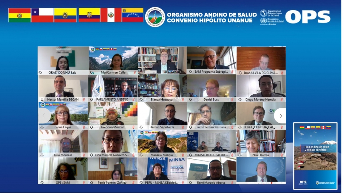 La Dra. María del Carmen Calle Dávila, Secretaria Ejecutiva del Organismo Andino de Salud – Convenio Hipólito Unanue (ORAS-CONHU), el Dr. Jarbas Barbosa da Silva, Subdirector de la Organización Panamericana de la Salud (OPS/OMS) junto al Sr. José Luis Durán, del Ministerio de Salud de Chile, país que tiene la Presidencia de la Reunión de Ministros de Salud del Área Andina, presentaron el día 30 de noviembre, el Plan Andino de Salud y Cambio Climático 2020-2025, documento que marca un hito en la articulación del trabajo regional sobre salud y cambio climático con el compromiso de los gobiernos, instituciones internacionales, socios cooperantes, la academia y organizaciones sociales.