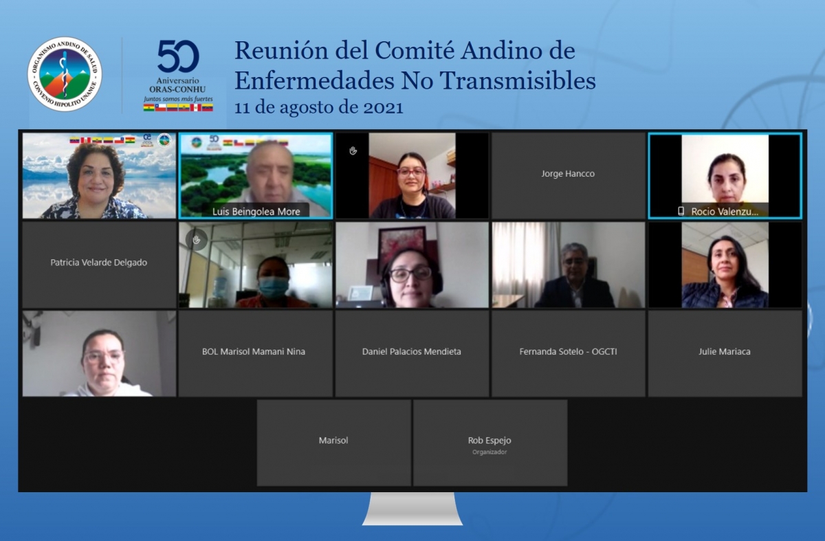 El día de hoy, se reunió el comité andino de Enfermedades No Transmisibles del ORAS – CONHU para continuar con la revisión de la propuesta de documento técnico de la Política Andina para enfrentar la pandemia de Sobrepeso y Obesidad, la misma que tiene un enfoque por Curso de Vida, priorizando los grupos de mayor riesgo y vulnerables a la inseguridad alimentaria y nutricional —mujeres, niños y niñas, jóvenes, personas adultas mayores, pobres y grupos indígenas, con intervenciones de carácter intersectorial e intergubernamental, multidisciplinario, participativo y priorizando el abordaje de los determinantes sociales y el fortalecimiento de la atención integral oportuna y de calidad, formulando acciones sostenibles y basadas en evidencia, en respeto a los derechos humanos y a la interculturalidad de nuestras poblaciones, en aras de lograr contribuir a mejorar el estado de salud y la calidad de vida de las personas en los países andinos.