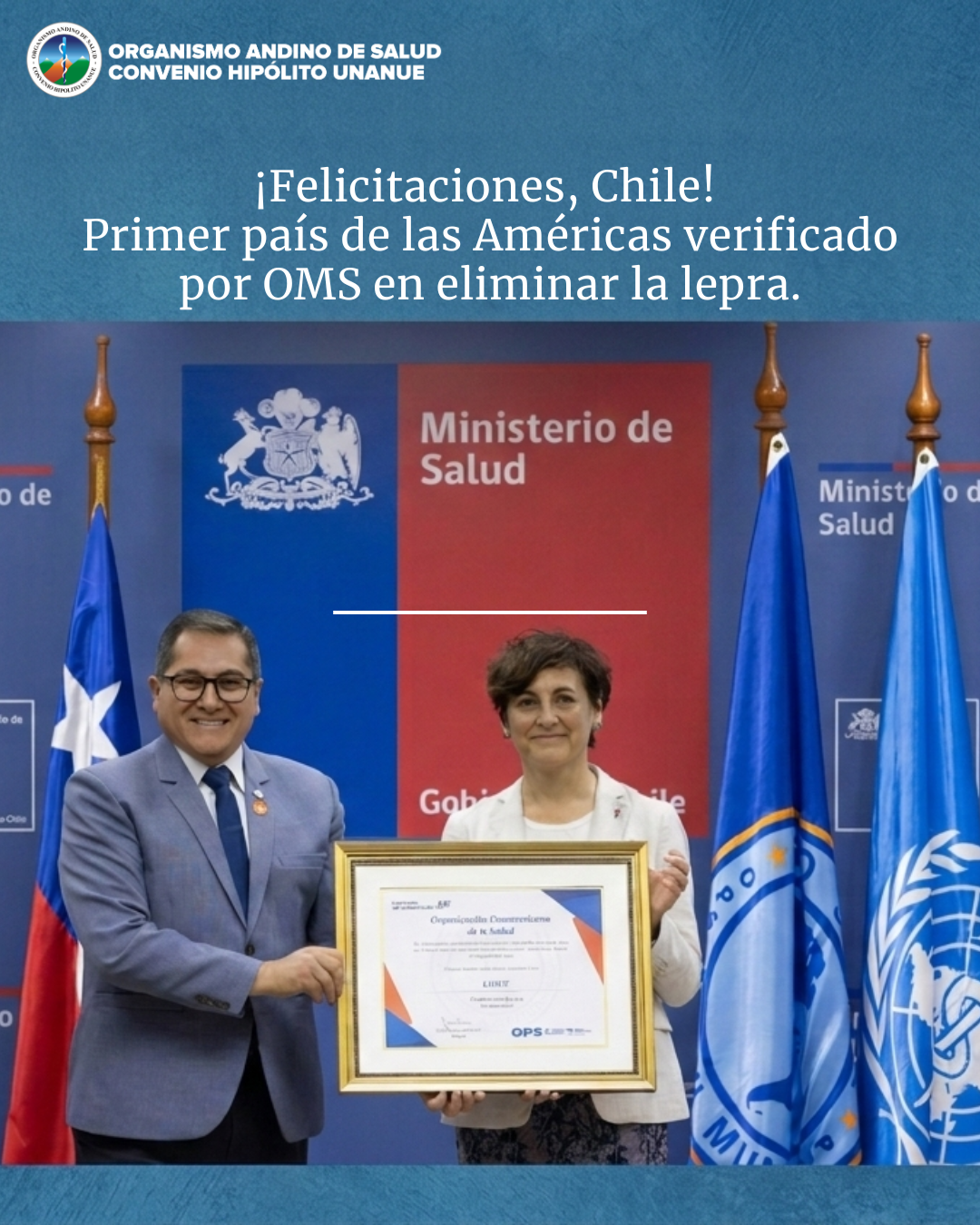 4 de marzo de 2026.- El Organismo Andino de Salud – Convenio Hipólito Unanue (ORAS-CONHU) celebra el hito histórico alcanzado por la República de Chile, que ha sido oficialmente verificada por la Organización Mundial de la Salud (OMS) como el primer país de la Región de las Américas en eliminar la lepra como problema de salud pública.