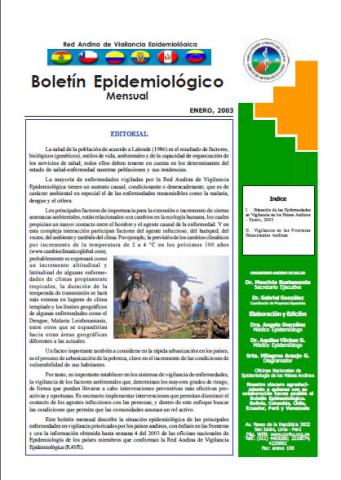 En concordancia con las resoluciones de la XXIII Reunión de Ministros de Salud del Área Andina (REMSAA) para fortalecer la vigilancia de problemas de salud prior izadas a fin de contribuir en la conformación del Escudo Andino de Salud Pública, y como parte de las estrategias en la divulgación sobre este tema, se entrega este boletín con la información obtenida a través de la Red Andina de Vigilancia Epidemiología (RAVE) de parte de Bolivia, Colombia, Chile, Perú, Ecuador y Venezuela que notifican semanalmente. Se pone a consideración de los lectores esta publicación que se entregará mensualmente, esperando que contribuya a la toma de acciones integradas para el control de las principales enfermedades que afectan a la población de los países andinos.