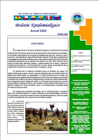 En concordancia con las resoluciones de la XXIII Reunión de Ministros de Salud del Área Andina (REMSAA) para fortalecer la vigilancia de problemas de salud prior izadas a fin de contribuir en la conformación del Escudo Andino de Salud Pública, y como parte de las estrategias en la divulgación sobre este tema, se entrega este boletín con la información obtenida a través de la Red Andina de Vigilancia Epidemiología (RAVE) de parte de Bolivia, Colombia, Chile, Perú, Ecuador y Venezuela que notifican semanalmente. Se pone a consideración de los lectores esta publicación que se entregará mensualmente, esperando que contribuya a la toma de acciones integradas para el control de las principales enfermedades que afectan a la población de los países andinos.