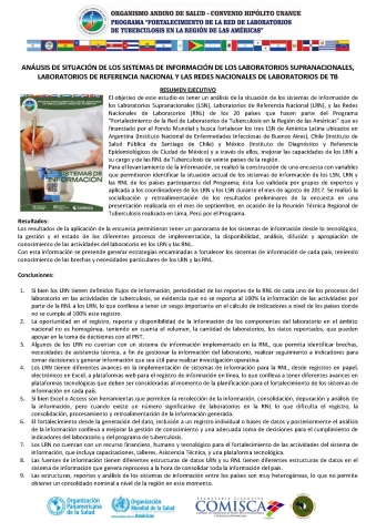 Resumen ejecutivo de la publicación: Análisis de situación de los sistemas de información de los laboratorios supranacionales, laboratorios de referencia nacional y las redes nacionales de laboratorios de TB / Situational analysis of information systems of supranational laboratories, national reference laboratories and national networks of TB laboratories