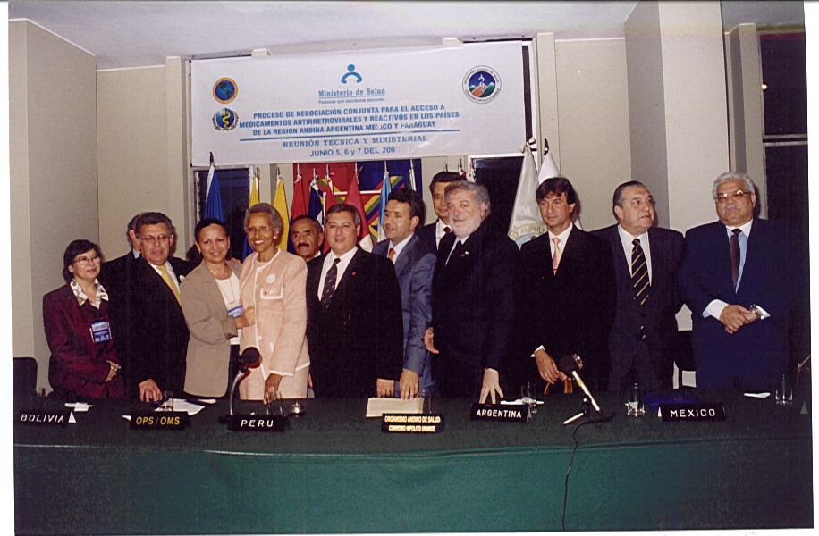 En junio de 2003 los ministros de salud de diez países latinoamericanos se reunieron en Lima (Perú) para negociar de manera conjunta el precio de los medicamentos y reactivos para el tratamiento del VIH/SIDA. La negociación se llevó a cabo entre los ministros de salud de los países y 8 laboratorios farmacéuticos (7 productoras de medicamentos genéricos y 1 productora de medicamentos originales). Los equipos ministeriales estuvieron asesorados por personal de sus respectivas Direcciones Generales de Medicamentos. Los expertos técnicos prestaron apoyo en temas relacionados con el marco regulador, calidad de medicamentos y equivalencia terapéutica, epidemiología, estimación de necesidades, protocolos de tratamiento y precios en los respectivos países.