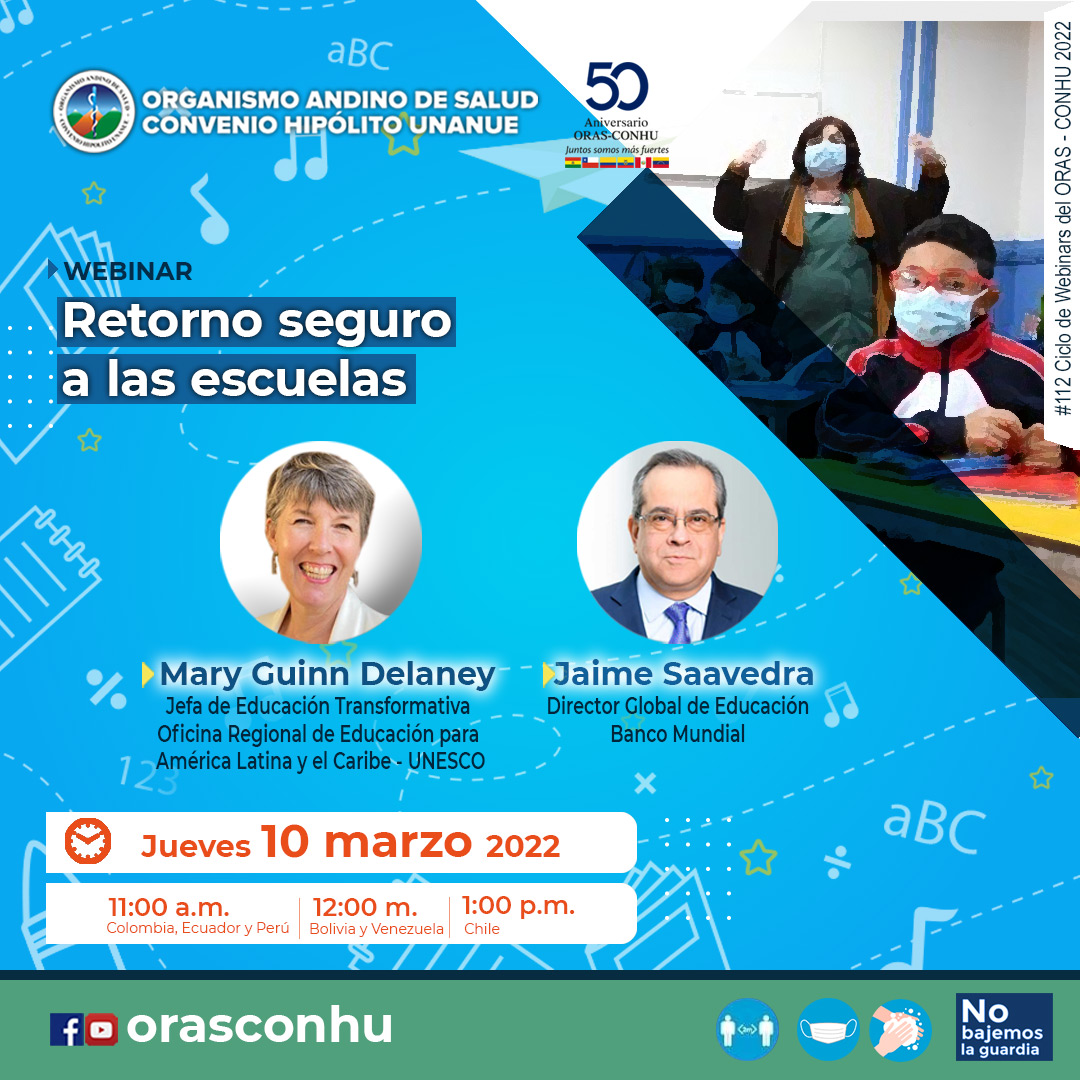Mallqui, M., Calle, MC., Delaney, M. & Saavedra, J. (2022, 10 marzo). Retorno seguro a las escuelas [Webinar]. Organismo Andino de Salud Convenio Hipólito Unanue. https://www.youtube.com/watch?v=HKHPLhgEcY4&t=1s