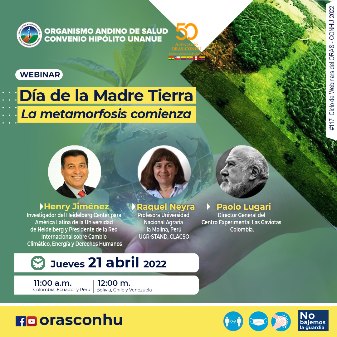 Pineda, B., Calle, MC., Jiménez, H., Neyra, R. & Luguri, P. (2022, 21 abril). Día de la Madre Tierra: La metamorfosis comienza [Webinar]. Organismo Andino de Salud Convenio Hipólito Unanue.