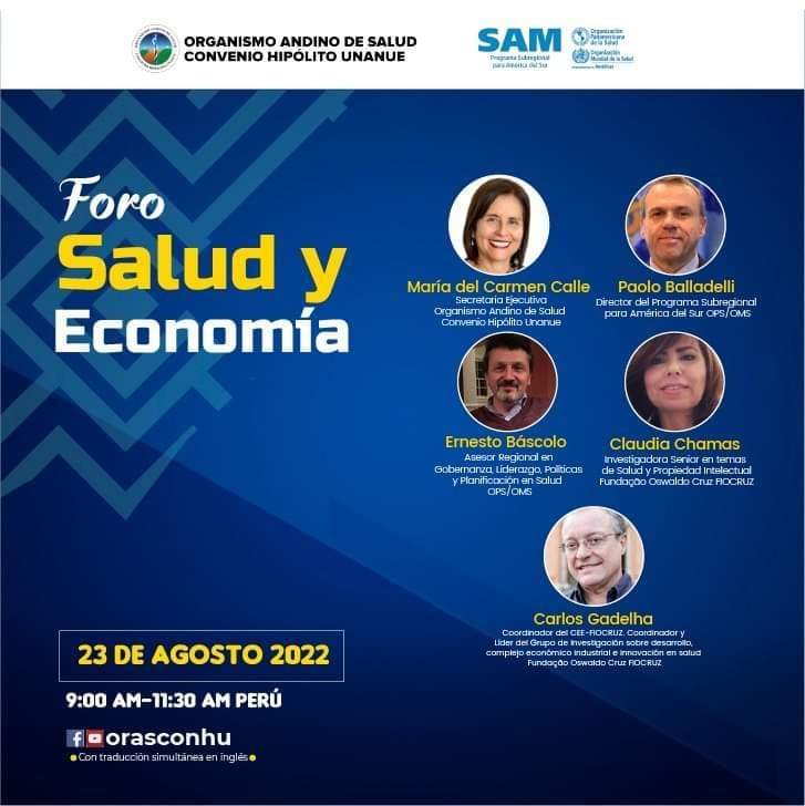 Calle, MC., Pineda, B., Balladelli, P., Báscolo, E., Chamas, C., Gadelha, C. (2022, 23 agosto). Foro Salud y Economía [Foro]. Organismo Andino de Salud - Convenio Hipólito Unanue.