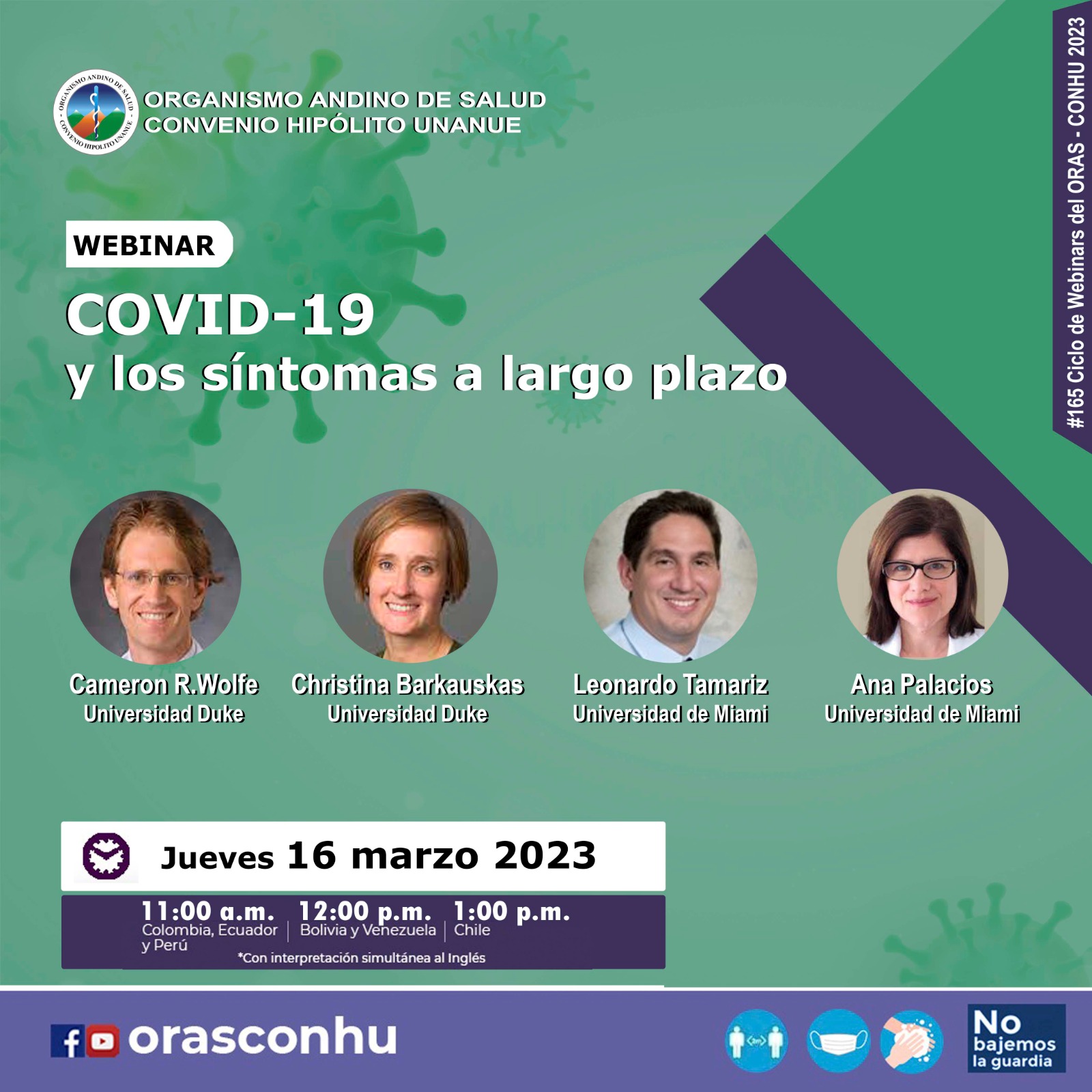 L, Beingolea., MC, Calle., C, Wolfe., C, Barkauskas., L, Tamariz., A, Palacios. (2023, 16 marzo). W0165 Covid-19 y los síntomas a largo plazo [Webinar]. Organismo Andino de Salud - Convenio Hipólito Unanue.