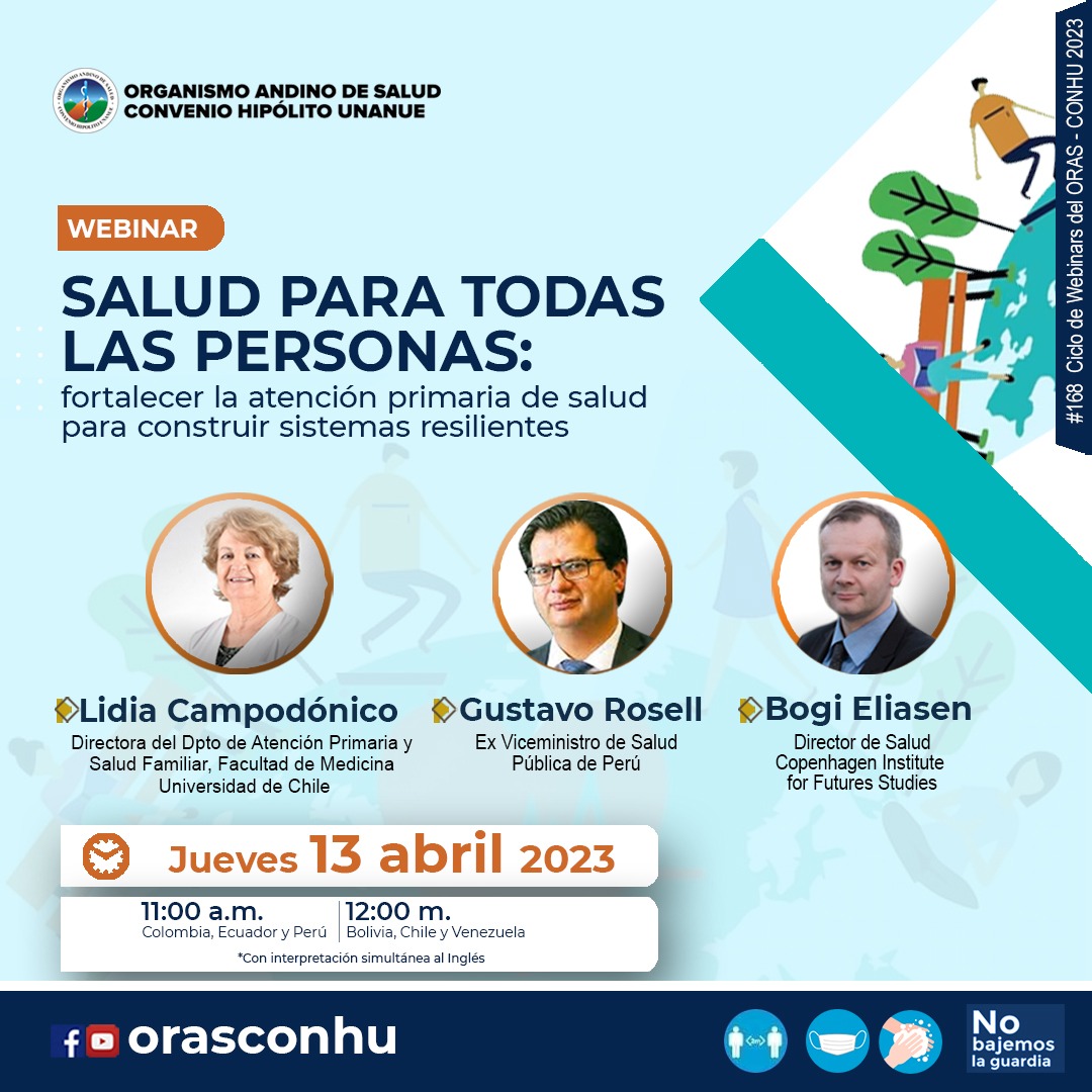 M, Mallqui., MC, Calle., L, Campodónico., G, Rosell., B, Eliasen. (2023, 13 abril). W0168 Salud para todas las personas: fortalecer la atención primaria de salud para construir sistemas resilientes [Webinar]. Organismo Andino de Salud - Convenio Hipólito Unanue.