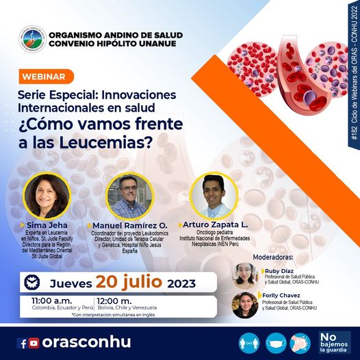 F, Chávez., MC, Calle., S. Jeha., M, Ramírez., A, Zapata. (2023, 20 julio). W0182 Serie especial: Innovaciones internacionales en salud ¿Cómo vamos frente a las leucemias? [Webinar]. Organismo Andino de Salud - Convenio Hipólito Unanue.