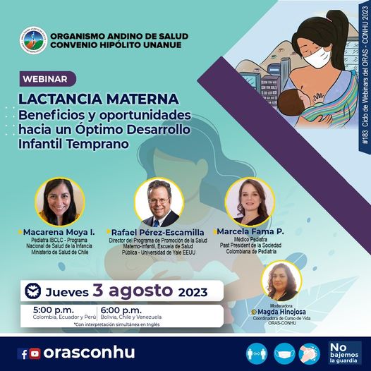 M, Hinojosa., MC, Calle., M. Moya., M, Fama. (2023, 3 agosto). W0183 Lactancia Materna: beneficios y oportunidades hacia un óptimo desarrollo infantil temprano [Webinar]. Organismo Andino de Salud - Convenio Hipólito Unanue.