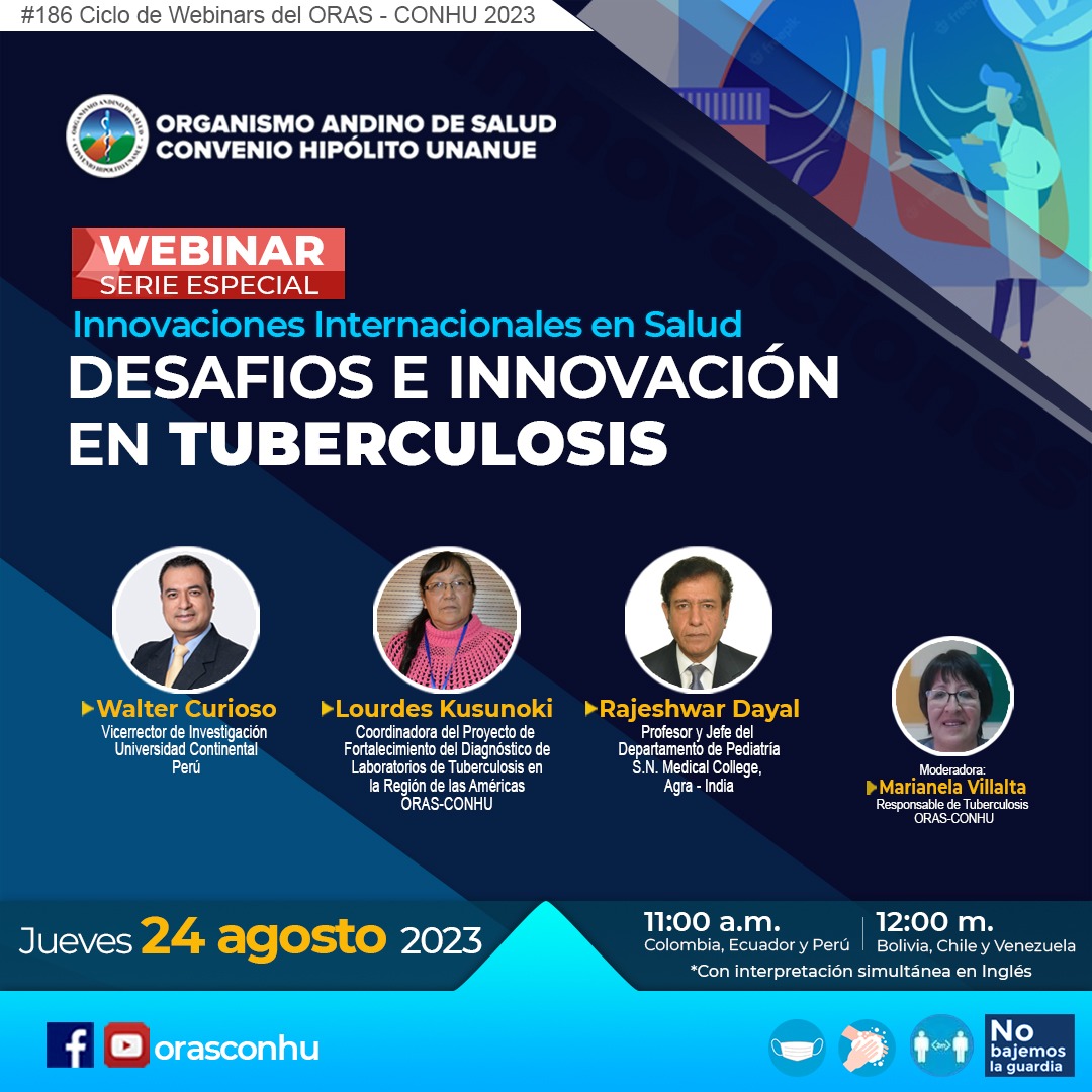 M. Villalta., M. Calle., W. Curioso., L, Kusunoki., R, Dayal. (2023, 24 agosto). W0186 Innovaciones Internacionales en Salud: Desafíos e innovación en tuberculosis [Webinar]. Organismo Andino de Salud - Convenio Hipólito Unanue
