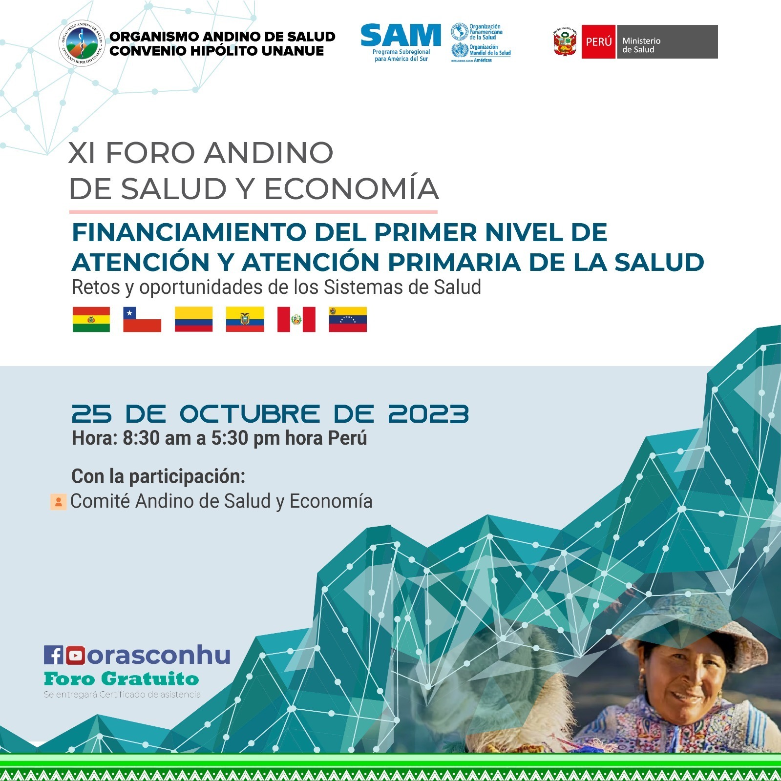 (2023, 25 octubre). XI Foro Andino de Salud y Economía "Financiamiento del Primer Nivel de Atención y Atención Primaria de Salud: Retos y oportunidades de los Sistemas de Salud" [Foro]. Organismo Andino de Salud - Convenio Hipólito Unanue