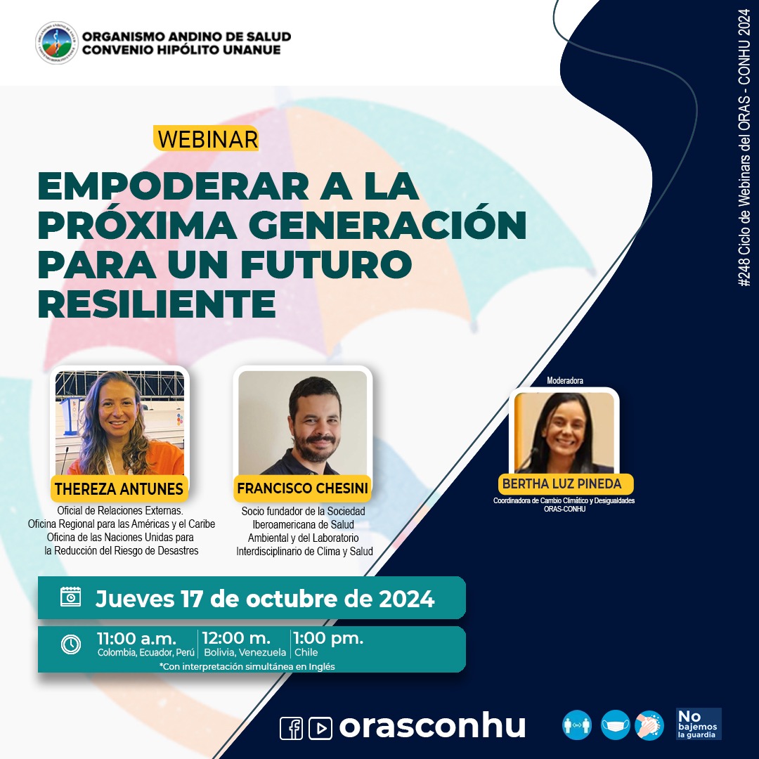 BL, Pineda., MC, Calle., Th, Antunes., F, Chesini. (2024, 17 octubre). W0248 Empoderar a la próxima generación para un futuro resiliente [Webinar]. Organismo Andino de Salud - Convenio Hipólito Unanue