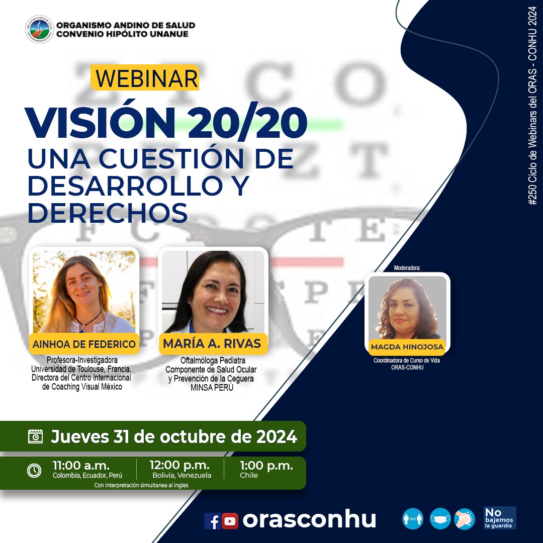 M, Hinojosa., MC, Calle., A, de Federico., M, Rivas (2024, 31 octubre). W0250 Visión 20/20: una cuestión de desarrollo y derechos [Webinar]. Organismo Andino de Salud - Convenio Hipólito Unanue