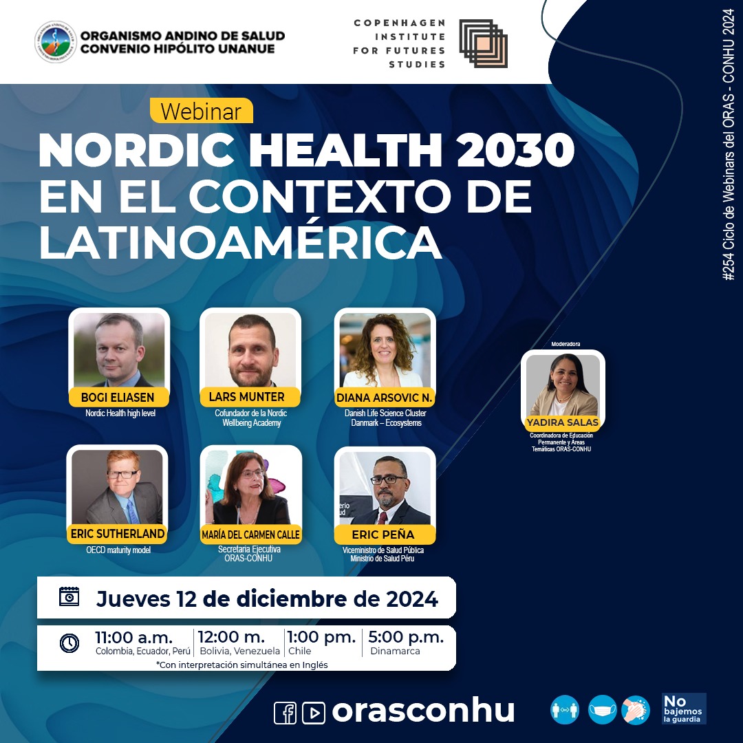 Y, Salas., MC, Calle., B, Eliasen., L, Münter., D, Arsovic., E, Sutherland., E, Peña. (2024, 12 diciembre). W0254 Nordic health 2030 en el contexto de América Latina [Webinar]. Organismo Andino de Salud - Convenio Hipólito Unanue