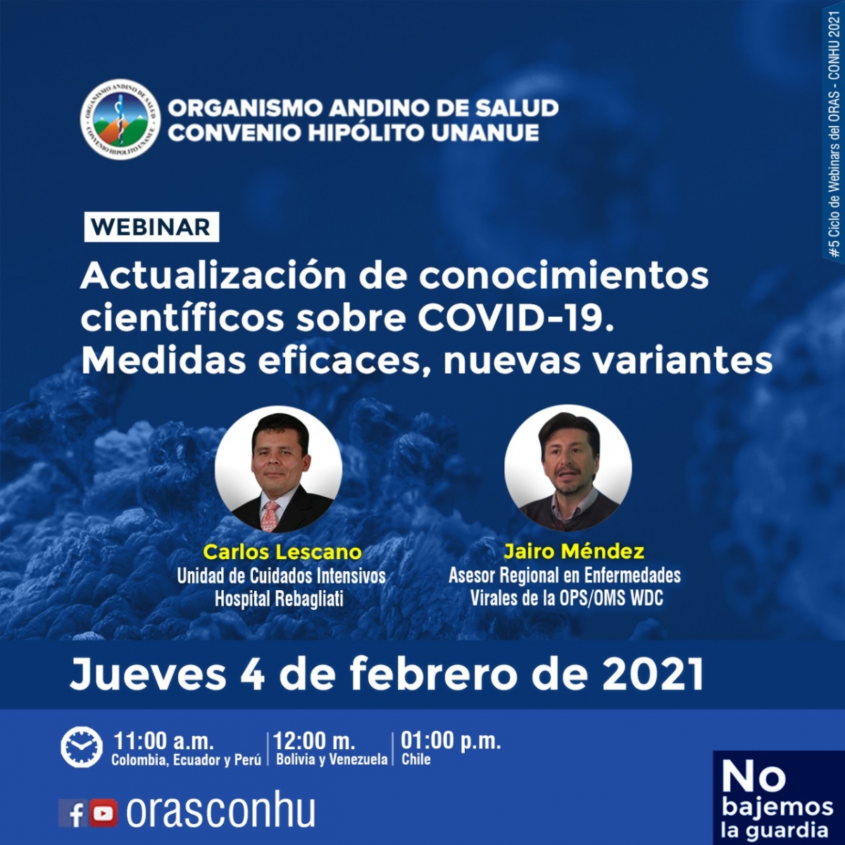 Descripción Dr. Carlos Lescano, Unidad de Cuidados Intensivos del Hospital Edgardo Rebagliati, Perú Dr. Jairo Méndez, Organización Panamericana de la Salud Moderador Patricia Jiménez. Enlace Video https://youtu.be/n9JGYOAweac