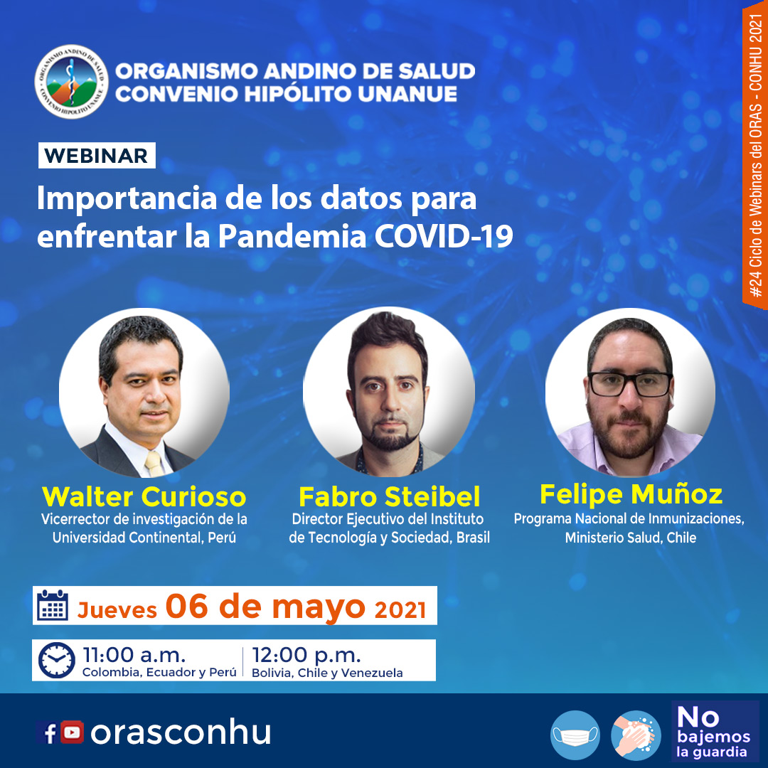 Salas, Y., Calle, María, Steibel, F., Muñoz, F. & Curioso, W. (2021). Importancia de los datos para enfrentar la Pandemia COVID-19 [Webinar]. Organismo Andino de Salud Convenio Hipólito Unanue. https://youtu.be/9PGnHvUPA0o