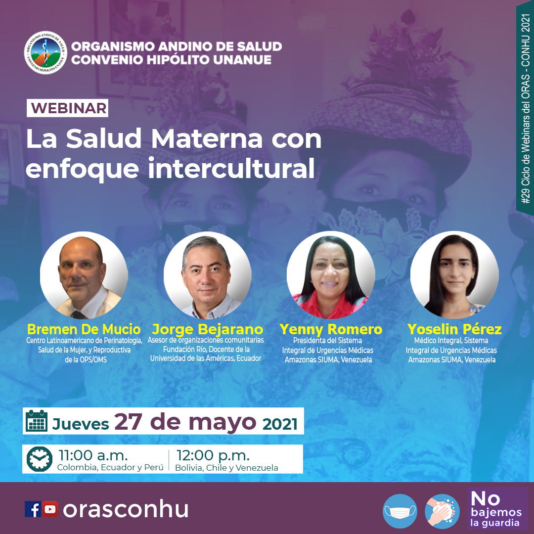 Lagos, G., Calle, María, Gómez, R., Bejarano, J., Alvarado, M., Contreras, G. & Romero, Y. (2021). La Salud Materna con enfoque intercultural [Webinar]. Organismo Andino de Salud Convenio Hipólito Unanue. https://www.youtube.com/watch?v=PoKgbQpdFjE