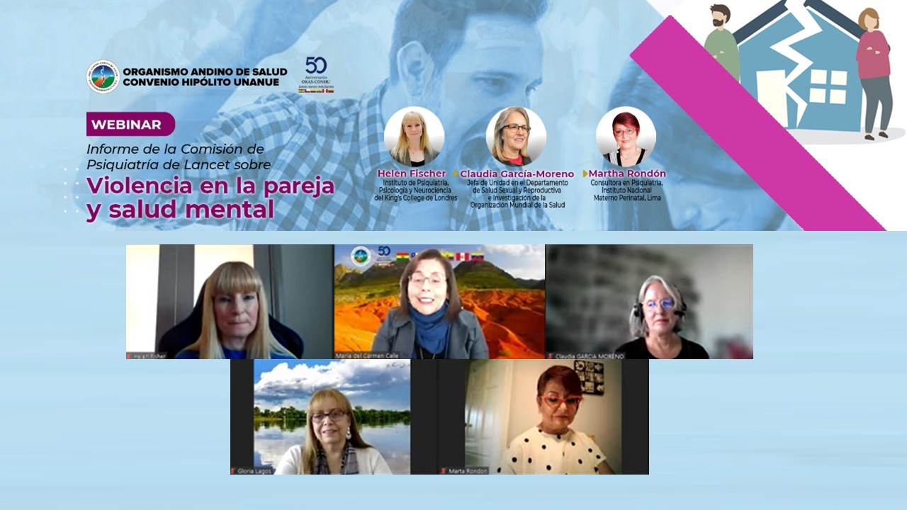 Siendo la violencia, en todas sus formas, una prioridad así como sus implicancias en la salud mental de la región andina, el Organismo Andino de Salud - Convenio Hipólito Unanue (ORAS-CONHU) realizó el Webinar para la presentación del informe de la Comisión de Psiquiatría de Lancet sobre violencia en pareja y salud mental.