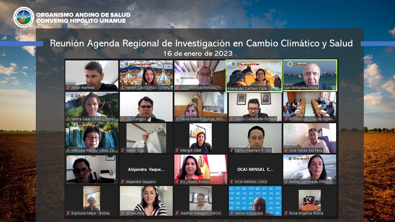 En una reunión convocada por el ORAS-CONHU, los miembros de la Red Andina de Institutos Nacionales de Salud -RAIS compartieron información sobre la elaboración de una Agenda Regional de Investigación en Cambio Climático y Salud, y además discutieron la participación conjunta en proyectos regionales de cooperación internacional para intensificar y fortalecer la vigilancia genómica de patógenos con potencial pandémico y epidémico para el periodo 2024-2030. Estuvieron presentes funcionarios y equipo técnico del Instituto Nacional de Laboratorios de Salud INLASA de Bolivia; del Instituto Nacional de Salud INS de Colombia; el Instituto Nacional de Salud Pública e Investigación INSPI del Ecuador; Instituto Nacional de Salud del Perú; del Instituto Nacional de Higiene "Rafael Rangel" de Venezuela; de las oficinas de Cooperación Internacional de los Ministerios de Salud y del Organismo Andino de Salud-Convenio Hipólito Unanue.