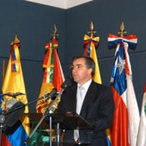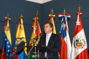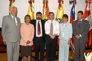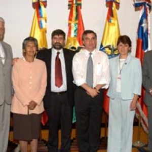 De derecha a izquierda: Emb. José Antonio García Belaunde, Representante Comunidad Andina Dra. Maria Soledad Barria, Ministra de Salud de Chile Dr. Francisco Armada, Ministro de Salud de Venezuela Dra. Pilar Mazzetti, Ministra de Salud de Perú Dr. Diego Palacio, Ministro de la Protección Social de Colombia Dra. Nila Heredia, Ministra de Salud de Bolivia Dr. Martín Luigi, Representante del ministerio de Salud de Ecuador Dr. Mauricio Bustamante, Secretario Ejecutivo Organismo Andino de Salud - Convenio Hipólito Unanue