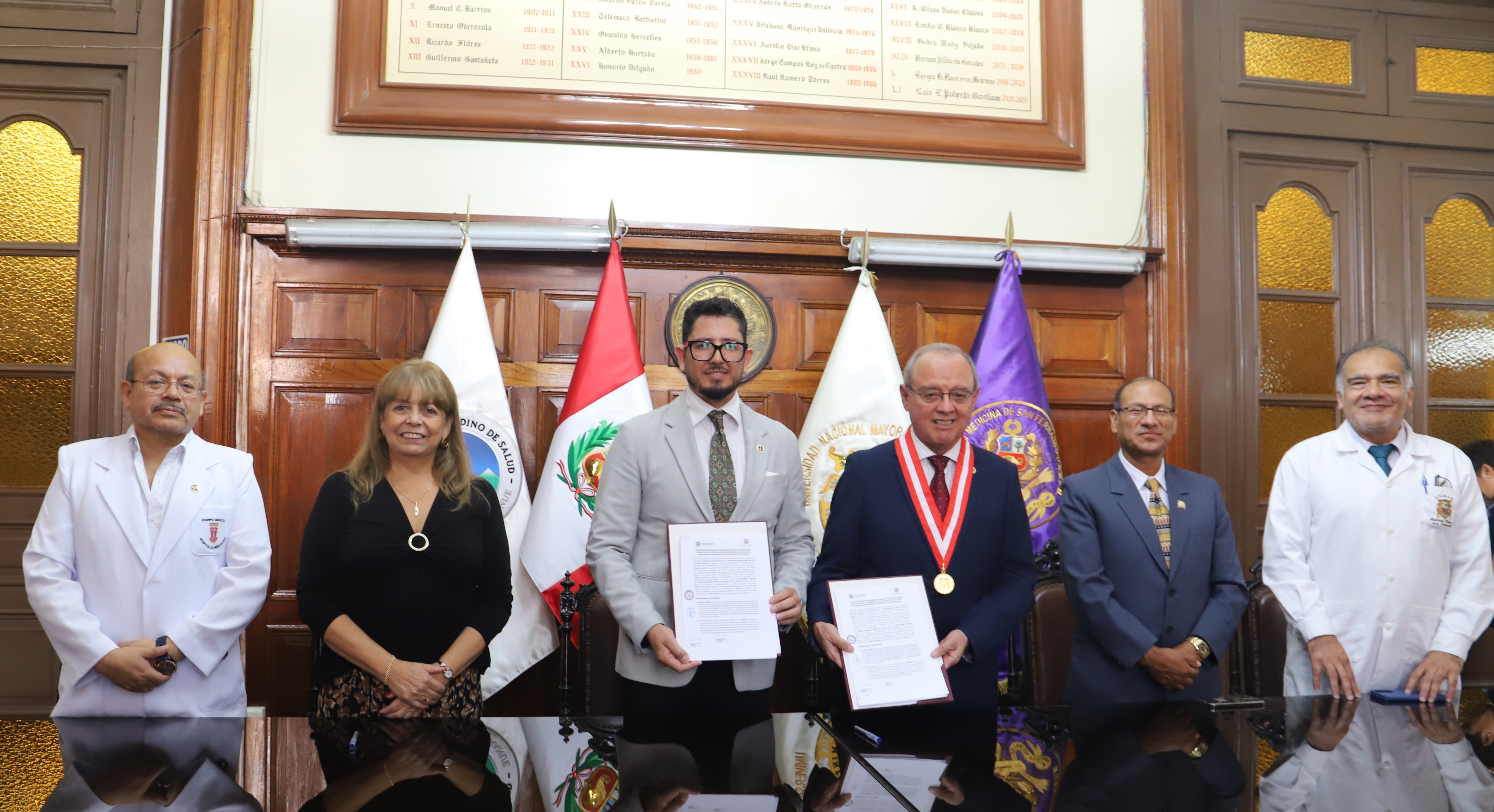 LIMA, PERÚ – En un acto que reafirma el compromiso con la integración regional, el Organismo Andino de Salud - Convenio Hipólito Unanue (ORAS-CONHU), representado por su Secretario Ejecutivo Dr. Fernando Araos Dattoli y la Facultad de Medicina de la Universidad Nacional Mayor de San Marcos (UNMSM) de la mano de su Decano, Dr. José Del Carmen Sara, suscribieron hoy un Convenio de Cooperación Interinstitucional.