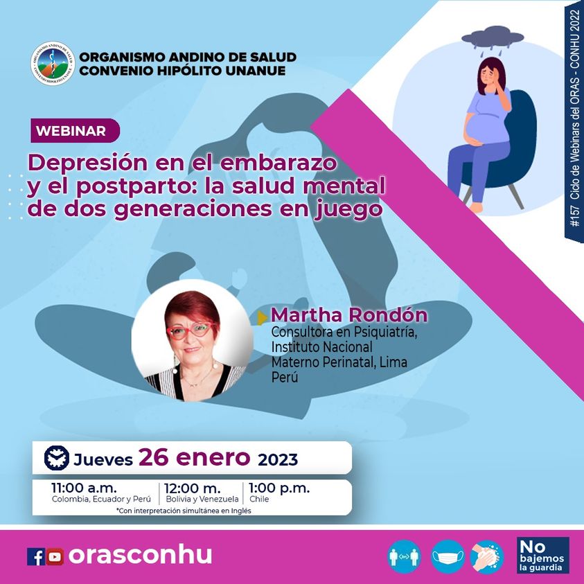 M, Mallqui., MC, Calle., M, Rondón. (2023, 26 enero). Depresión en el embarazo y postparto: la salud mental de dos generaciones en juego [Webinar]. Organismo Andino de Salud - Convenio Hipólito Unanue.