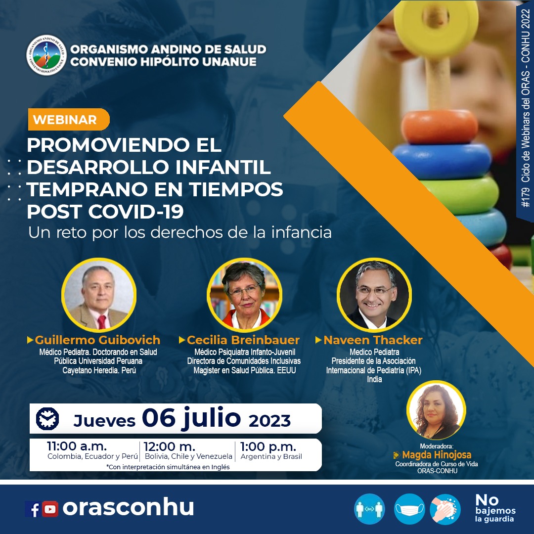 M, Hinojosa., MC, Calle., G, Guibovich., C, Breinbauer., N, Thacker. (2023, 6 julio). W0179 Promoviendo el desarrollo infantil temprano en tiempos de post Covid-19: Un reto por los derechos de la infancia [Webinar]. Organismo Andino de Salud - Convenio Hipólito Unanue.