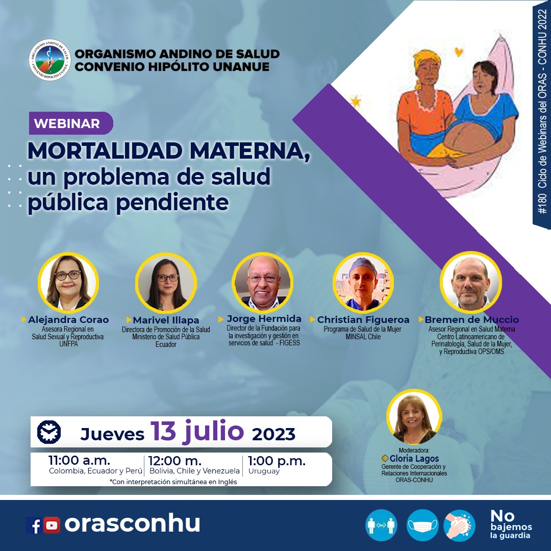 G, Lagos., MC, Calle., A, Corao., J, Hermida., C, Figueroa., B. Muccio., M, Illapa. (2023, 13 julio). W0180 MORTALIDAD MATERNA, un problema de salud pública pendiente [Webinar]. Organismo Andino de Salud - Convenio Hipólito Unanue.
