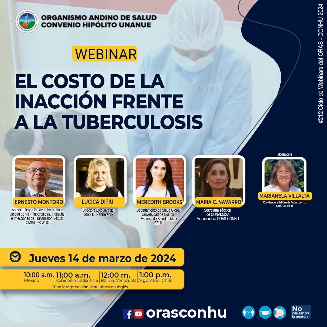 M, Villalta., MC, Calle., E, Montoro., L, Ditiu., M, Brooks., MC Navarro. (2024, 14 marzo). W0213 El costo de la inacción frente a la tuberculosis [Webinar]. Organismo Andino de Salud - Convenio Hipólito Unanue