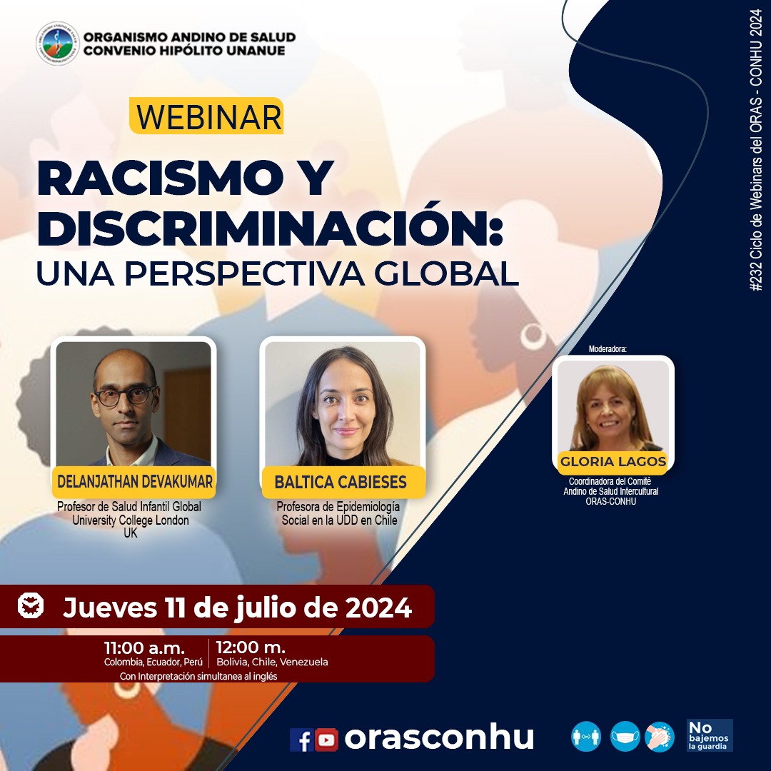 G. Lagos., MC, Calle., D, Devakumar., B, Cabieses. (2024, 11 julio). W0232 Racismo y discriminación: Una perspectiva globa [Webinar]. Organismo Andino de Salud - Convenio Hipólito Unanue