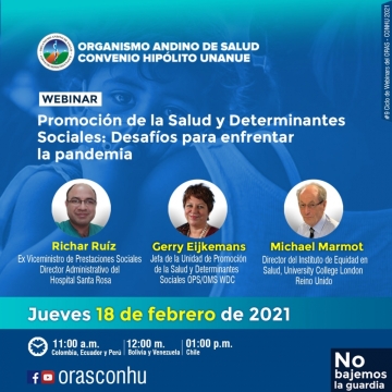 W0049 Webinar del ORAS - CONHU Promoción de la Salud y Determinantes Sociales: Desafíos para enfrentar la pandemia